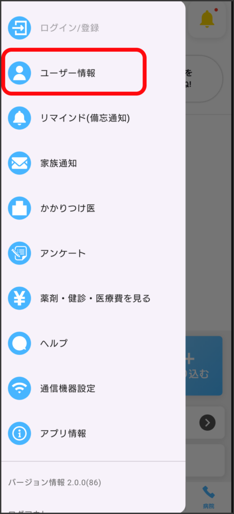 1.「ハートサイン」アプリを起動し、「メニュー」をタップ