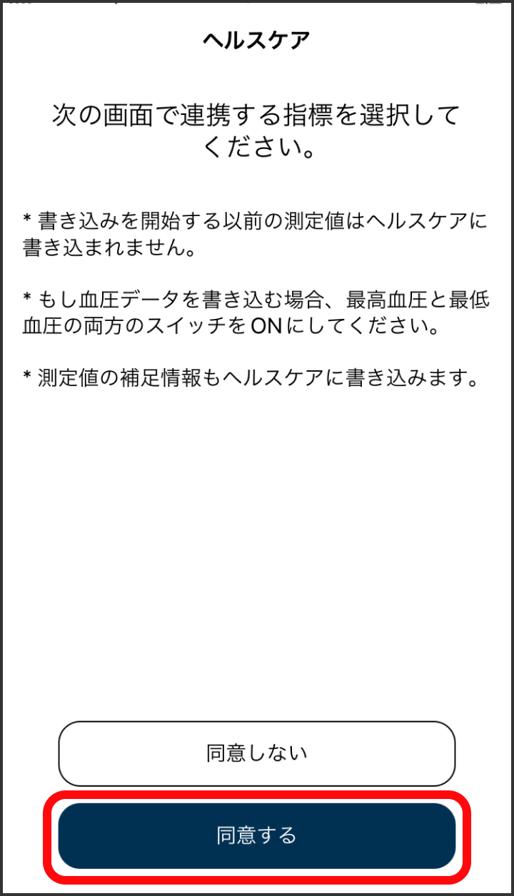 3.ヘルスケア」画面下部の「同意する」をタップ