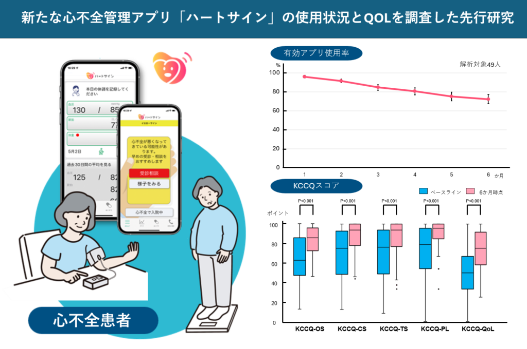 この論文は、心不全アプリ「ハートサイン」の有用性を初期段階で示したものです。